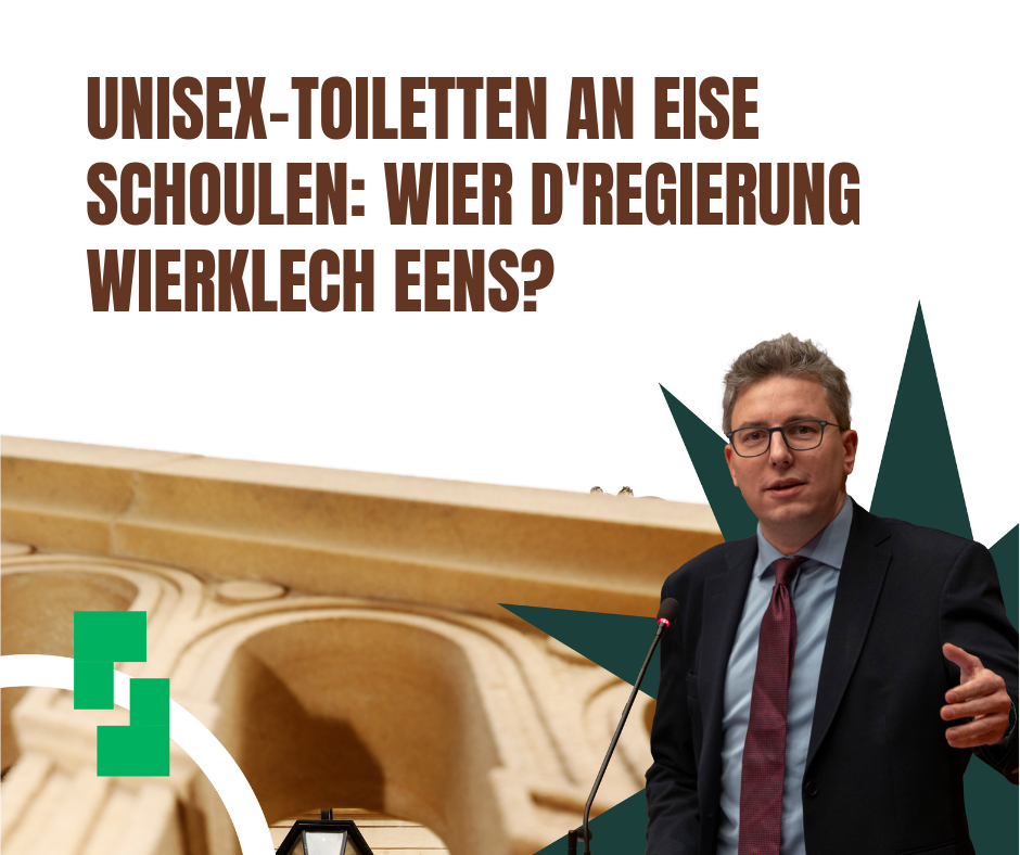Ech hunn zesumme mam Marc Goergen eng parlamentaresch Fro un d'Regierung geriicht iwwert d'Konzept vun inklusiven Toiletten an eise Lycéeën.