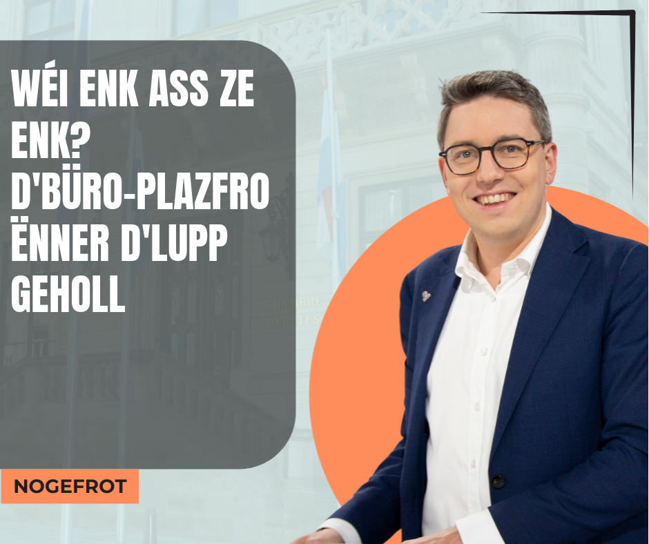 Haut hunn ech eng parlamentaresch Fro iwwert d'Reegele fir Bürosraim gestallt. Et ass eng Realitéit, dass vill Betriber hir Büroe méi a méi dicht besetzen, fir Käschten ze spueren. Mee wat sinn d'Konsequenze fir d'Gesondheet an d'Wuelbefannen vun de Mataarbechter?