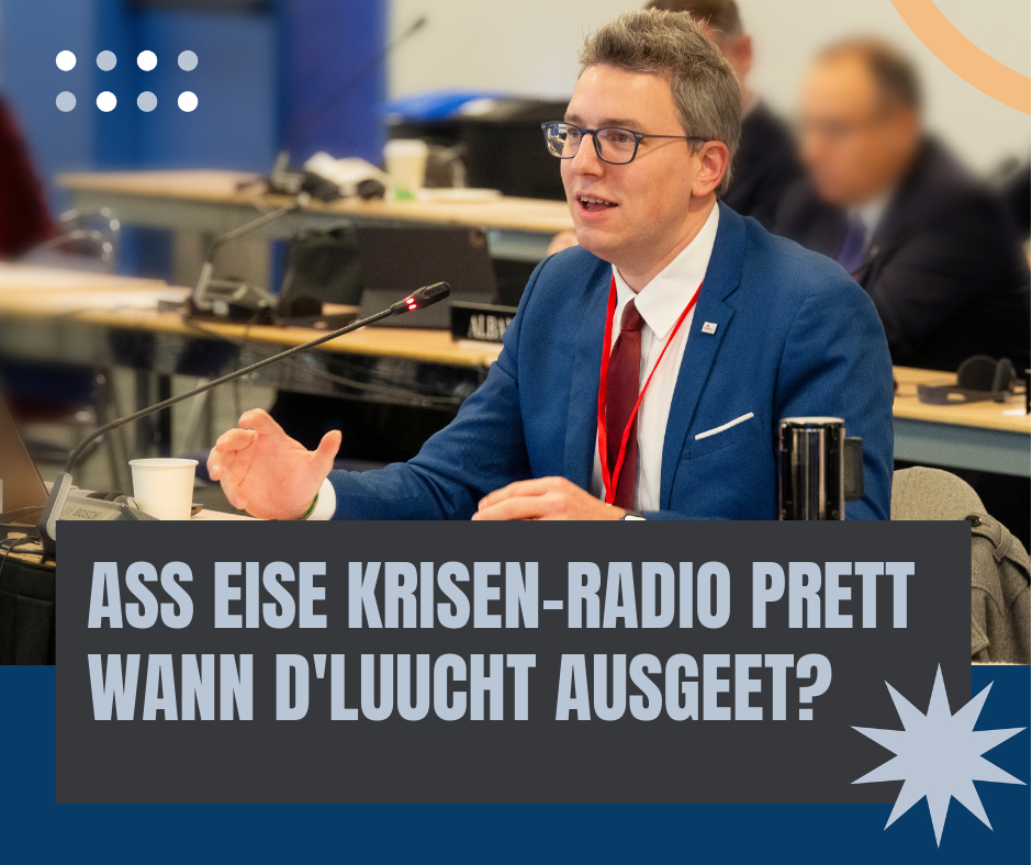 Et kann net sinn, datt mer de Bierger soen, si sollen e Batterie-Radio fir de Krisefall kafen, an dann funktionéiert d'Infrastruktur selwer net bei engem einfache Stroumausfall! 🔋📻