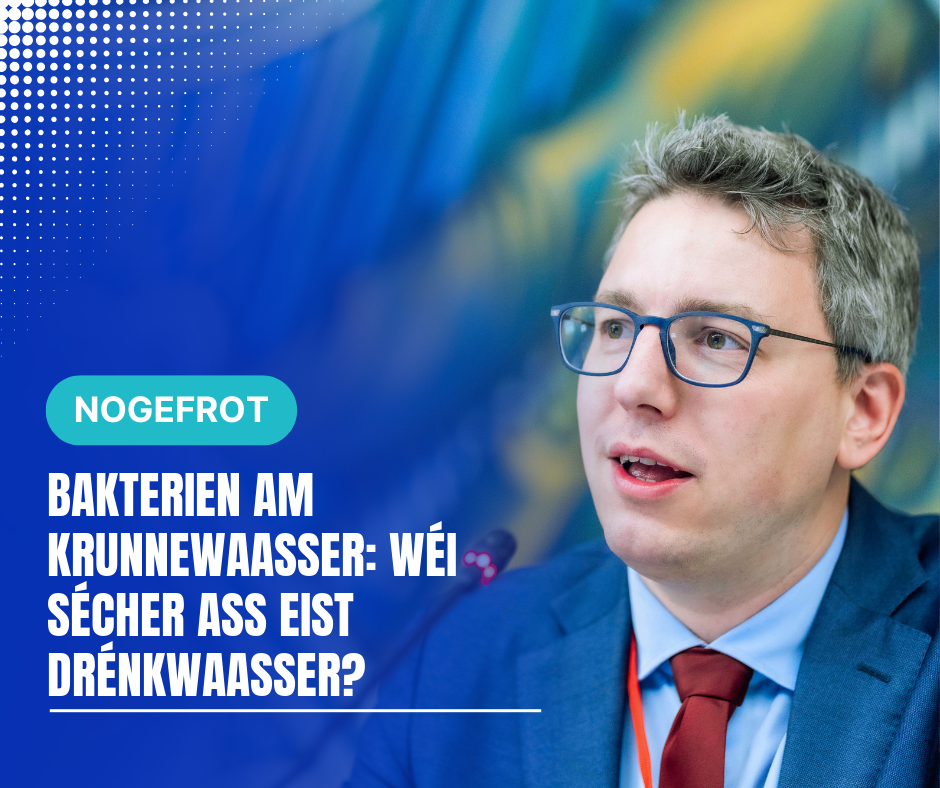 I've just submitted a parliamentary question regarding the recent drinking water contamination in Strassen, where fecal bacteria have been detected. This follows another recent incident in Steinfort involving Legionella bacteria.