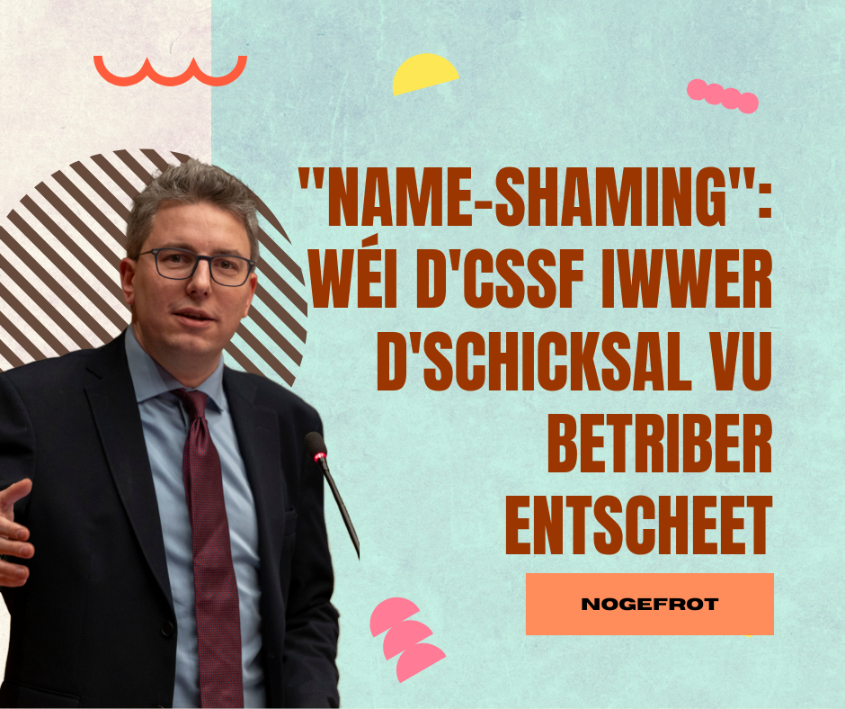 Haut hunn ech eng parlamentaresch Fro gestallt iwwer d'Praxis vum "Name-Shaming" bei de Geldstrafen, déi d'CSSF verhÀnkt.