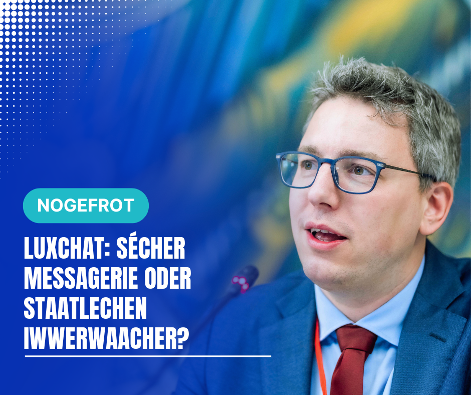 D'Regierung huet mat "Luxchat" eng Messagerie-Léisung lancéiert, déi als sécher a privatsphärefrëndlech vermaart gëtt. Gläichzäiteg huet Lëtzebuerg fir en EU-Mandat zur "Chatkontroll" gestëmmt, dat "Client-Side Scanning" erméiglecht.