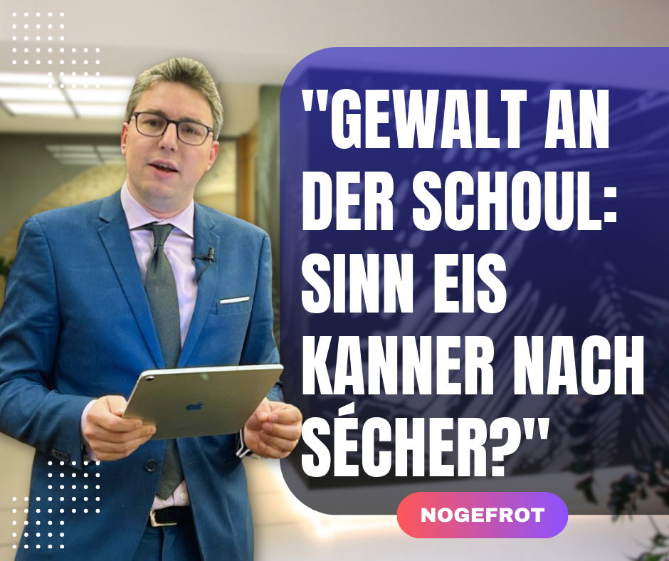 Ech hunn eng wichteg Fro gestallt iwwer d'Gewalt an eise Grondschoulen. [VISUAL: Classroom with students]
