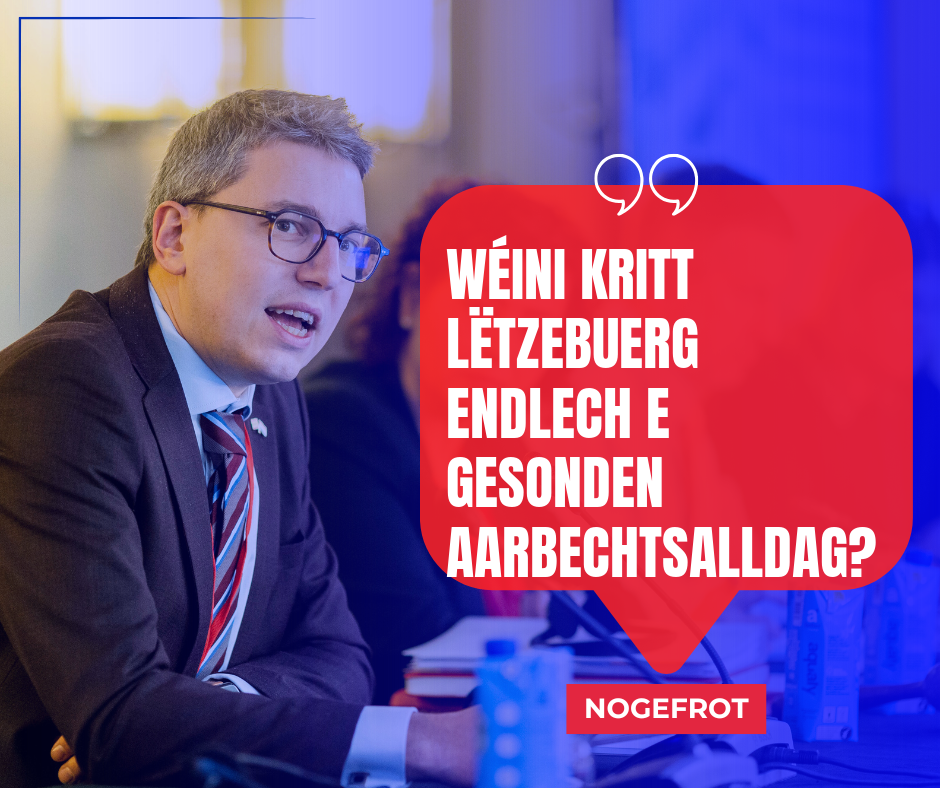 Haut hunn ech eng wichteg Fro un d'Regierung gestallt iwwert d'Aarbechtsbedingungen hei zu Lëtzebuerg. De neie Quality of Work Index 2024 weist leider, datt vill Salariéeë weiderhin ënner Stress, Burnout a Réckeproblemer leiden. 😥