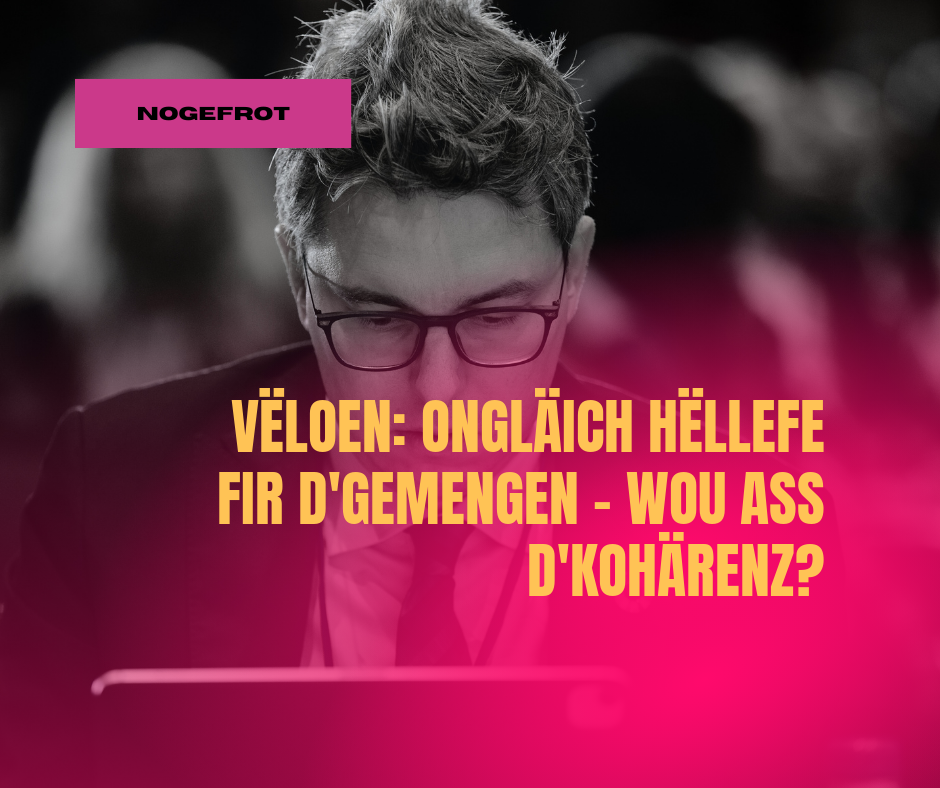 Ech hunn eng parlamentaresch Fro gestallt, well d'Gemengen net déiselwecht Primmen fir Vëloen ubidden. Dat féiert zu Ongläichheeten a manner Leit kréien eng Hëllef fir Vëloen ze kafen.
