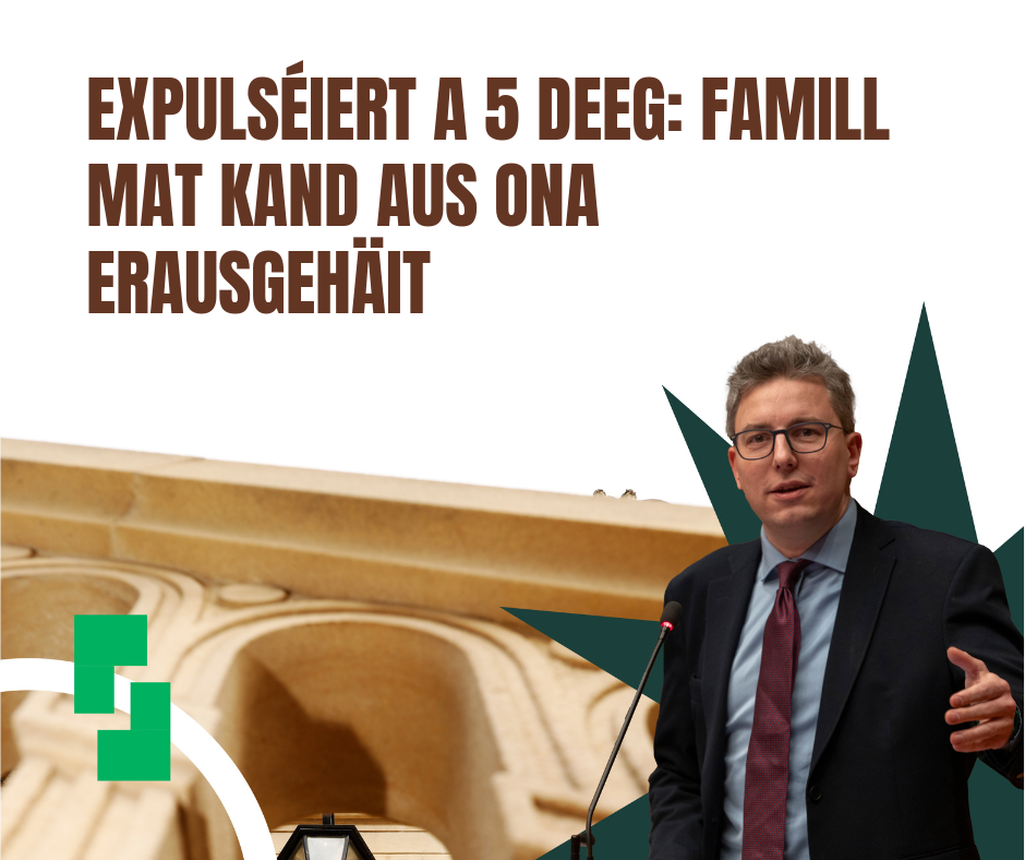 Ech hunn eng parlamentaresch Fro iwwer d'Expulsioun vu Familljen aus ONA-Strukturen gestallt. 🏠 Eng Famill, mat engem schoulpflichtegebm Kand, krut nëmmen 5 Deeg Zäit fir ze plënneren!